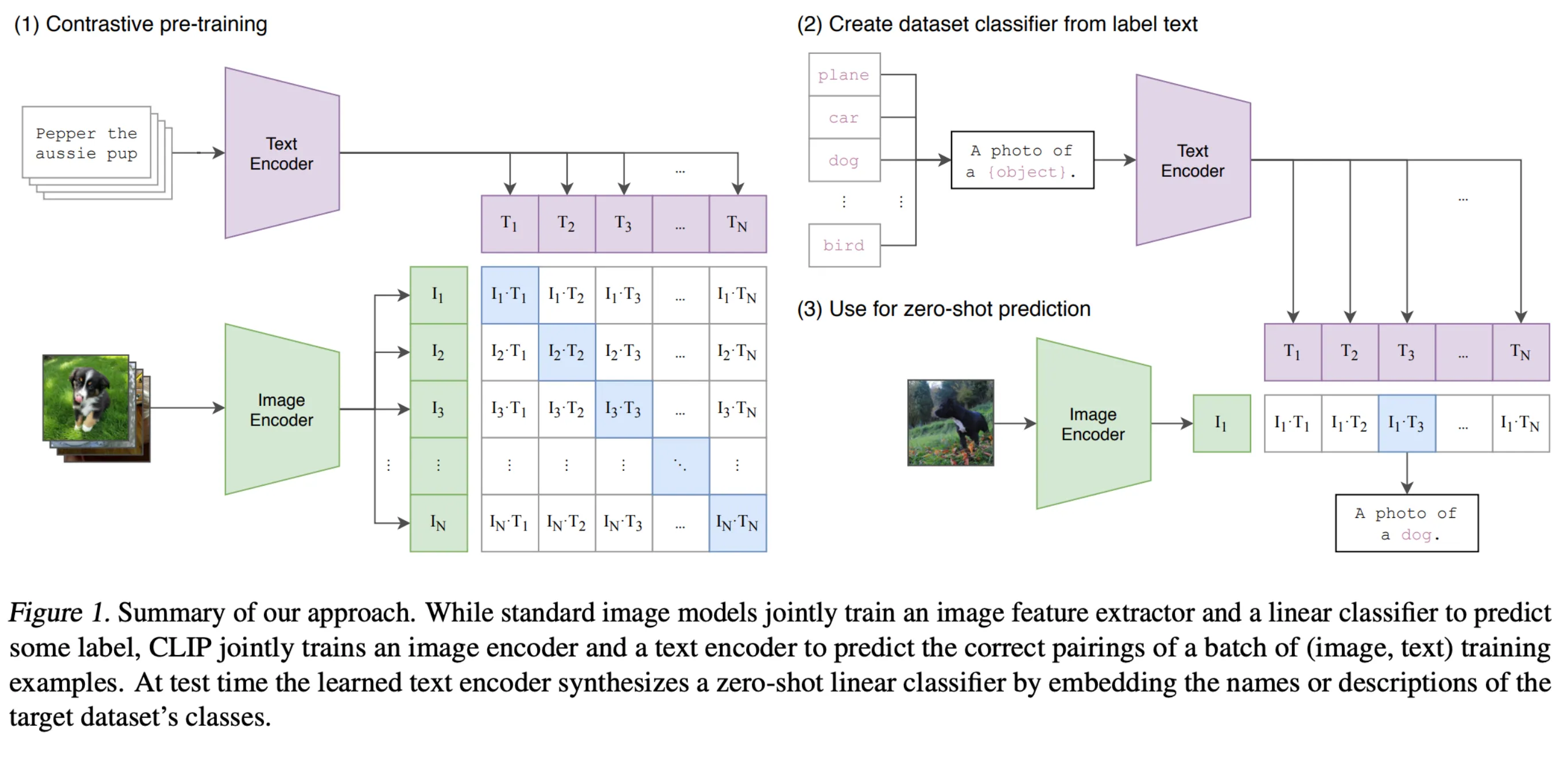 CLIP이 하고자 하는 것은 Image와 Text가 서로 Align되는 Image와 Text의 embedding을 뽑는 것이다. 훈련된 Image Encoder와 Text Encoder는 추후 여러 task에 initial Encoder를 제공할 수 있다. 실제로 여러 task에 CLIP에서 훈련된 Encoder가 쓰인다.