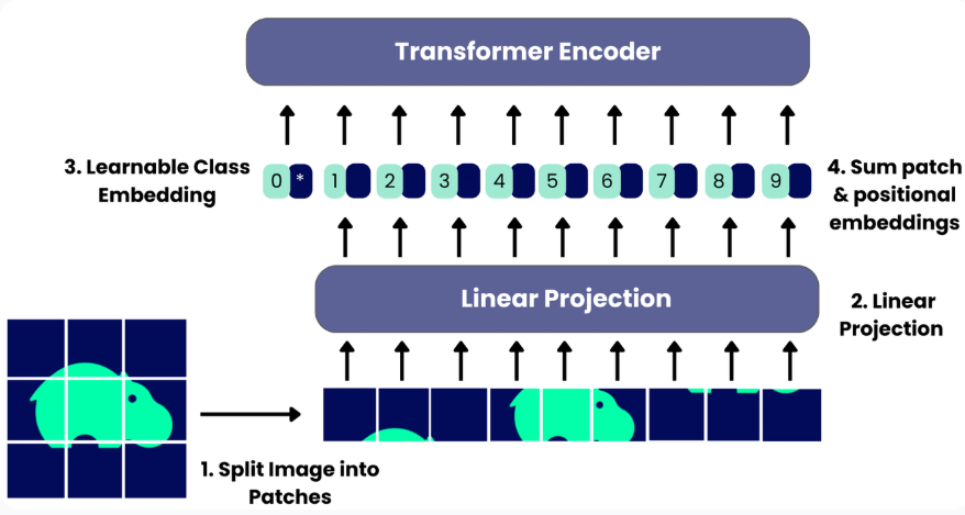 1. 입력 이미지 를 patch 단위로 나눈 뒤, ViT 기반 image encoder에 통과시켜 개의 visual token representation을 얻는다.